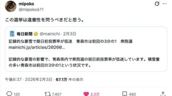 ニュー速 期日前投票は前例のない低迷、大雪が原因とみられる
