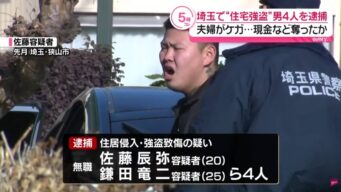 ニュー速 狭山市の強盗致傷事件 17歳~25歳の4人を逮捕