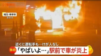 ニュー速 駅前でワゴン車が大炎上…動転した運転手はペットボトルで”消火”試みる