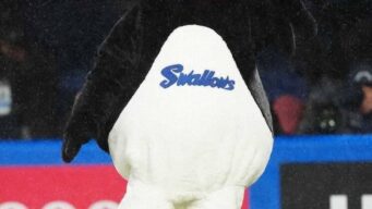 talkニュー速+ 【人気マスコット】ヤクルト・つば九郎が神宮に帰ってきた! 待望の活動再開にファン大喝采 池山監督とガッチリ握手