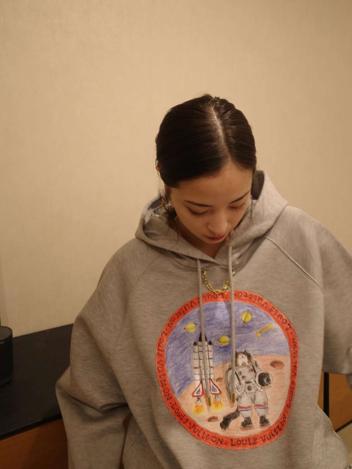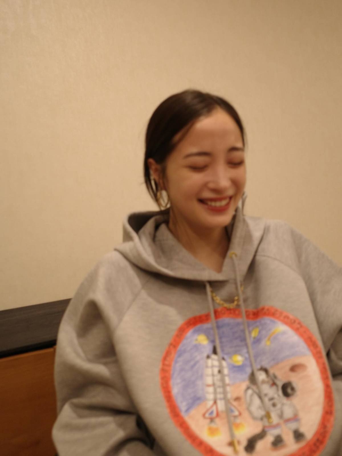 広瀬さんは、今回の投稿で「かわいいパーカー。最近のオキニ」とつづり、グレーのパーカー姿を公開。オーバーサイズなパーカーのフロント部分には、宇宙飛行士が月面に降り立っているようなイラストが色鉛筆のようなタッチで描かれていて、とってもおしゃれでかわいらしいです。