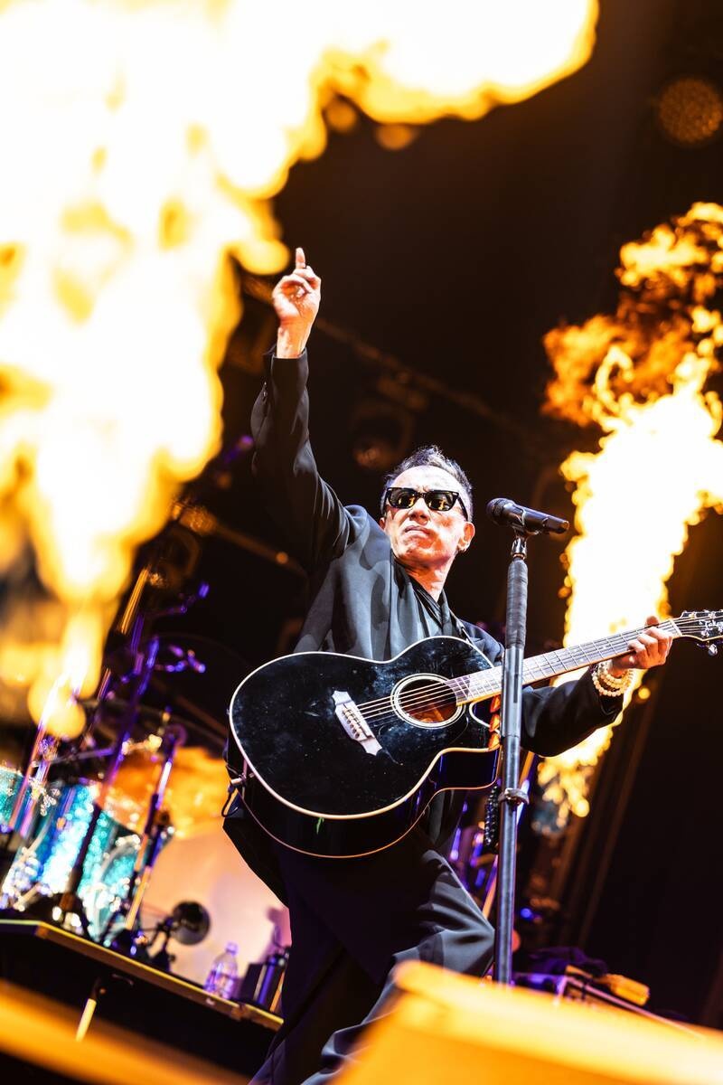 開演時間を大きく過ぎて始まった、この日の公演。「家族」で幕開けし、そこから「HOPE」「黒いマントと真っ赤なリンゴ」、皮肉たっぷりの「豚」、弾き語りの「STAY DREAM」へと続く冒頭の曲たちは、ここ数年の感情を凝縮したものになった。