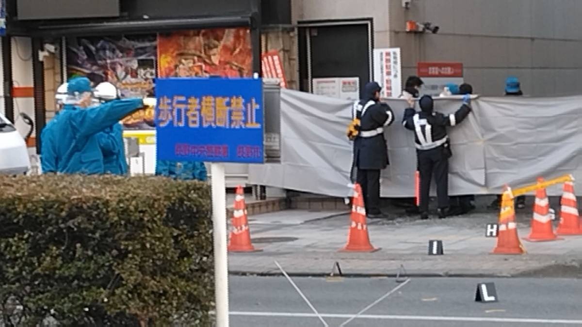 駅前の横断歩道には血のついたタイヤの跡も残っていました。