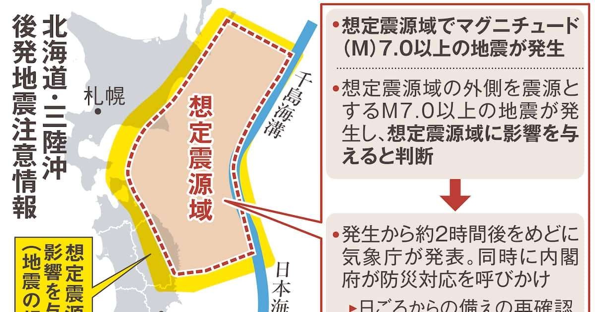 【注意】北海道・三陸沖後発地震注意情報を初発表 M8級以上の巨大地震に注意、備えの再確認を
