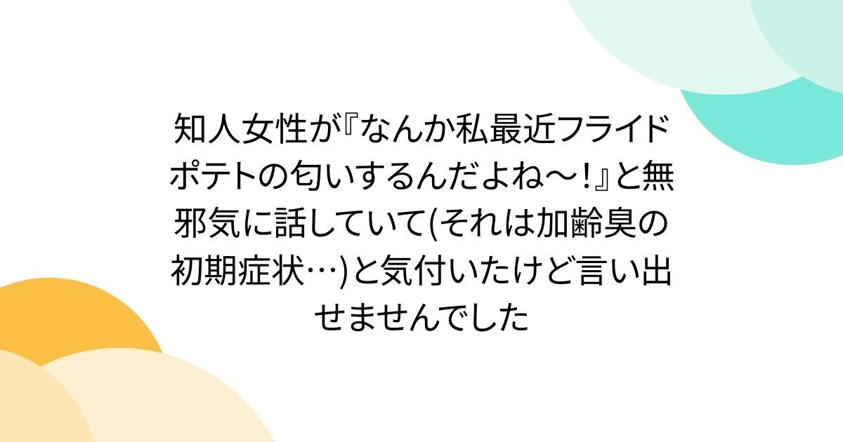 知人女性が『なんか私最近フライドポテトの匂いするんだよね~!』と無邪気に話していて(それは加齢臭の初期症状…)と気付いたけど言い出せませんでした