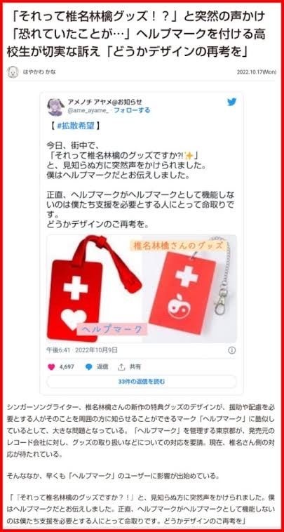 🍎椎名林檎ヘルプマーク騒動経緯