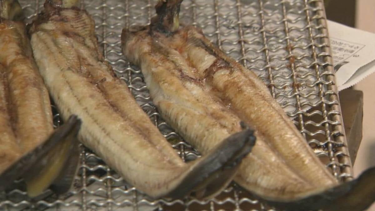 「これが白焼きでございます」毎年春から秋にかけて、自宅近くの神西湖でウナギを釣り、白焼きに加工して市内のスーパーに卸している江角さん。
