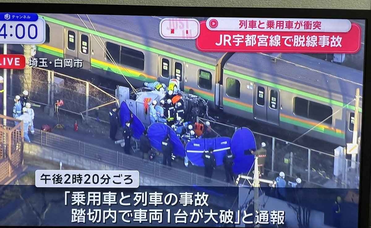 JR東日本によりますと1日午後2時20分頃、埼玉県の宇都宮線・新白岡駅と久喜駅の間で踏切事故が発生しました。消防によりますと「乗用車と電車の接触事故」と目撃者から通報があったということです。