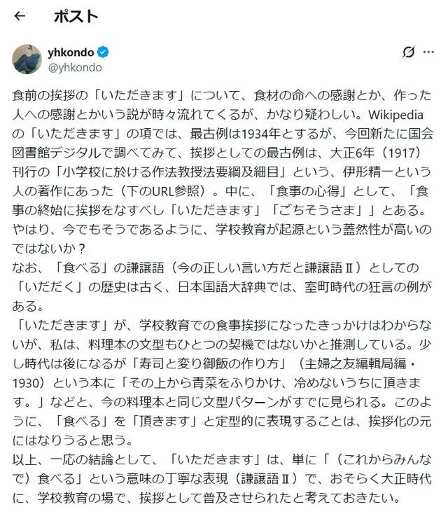 きっかけになったのは日本語研究家で青山学院大学名誉教授の近藤泰弘さん(@yhkondo)が投稿した