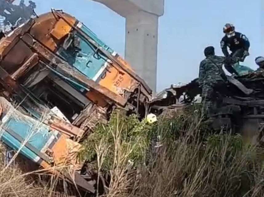 ナコンラチャシマ県広報局は声明で、「クレーンが列車に倒れ、列車は脱線して炎上した」と述べた。