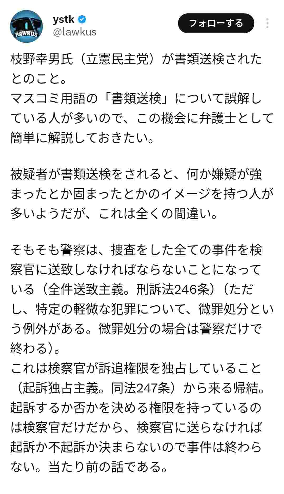 - 立憲の書類送検は綺麗な書類送検