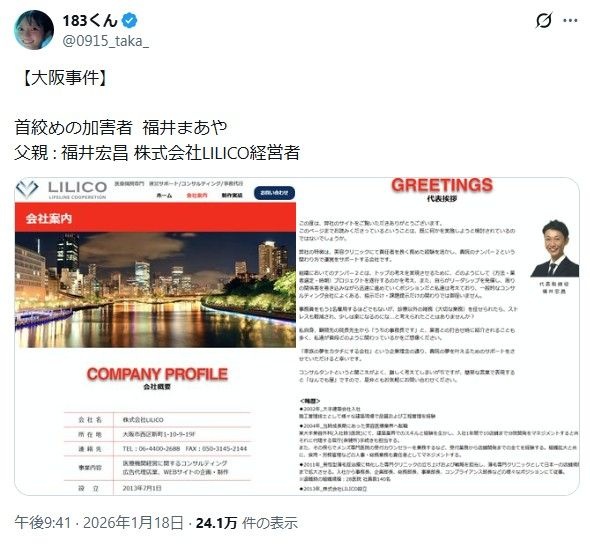 中学校:大阪市立堀江中学校(西区北堀江4丁目7-1)父親:福井宏昌(株式会社LILICO代表・医療コンサルタント)