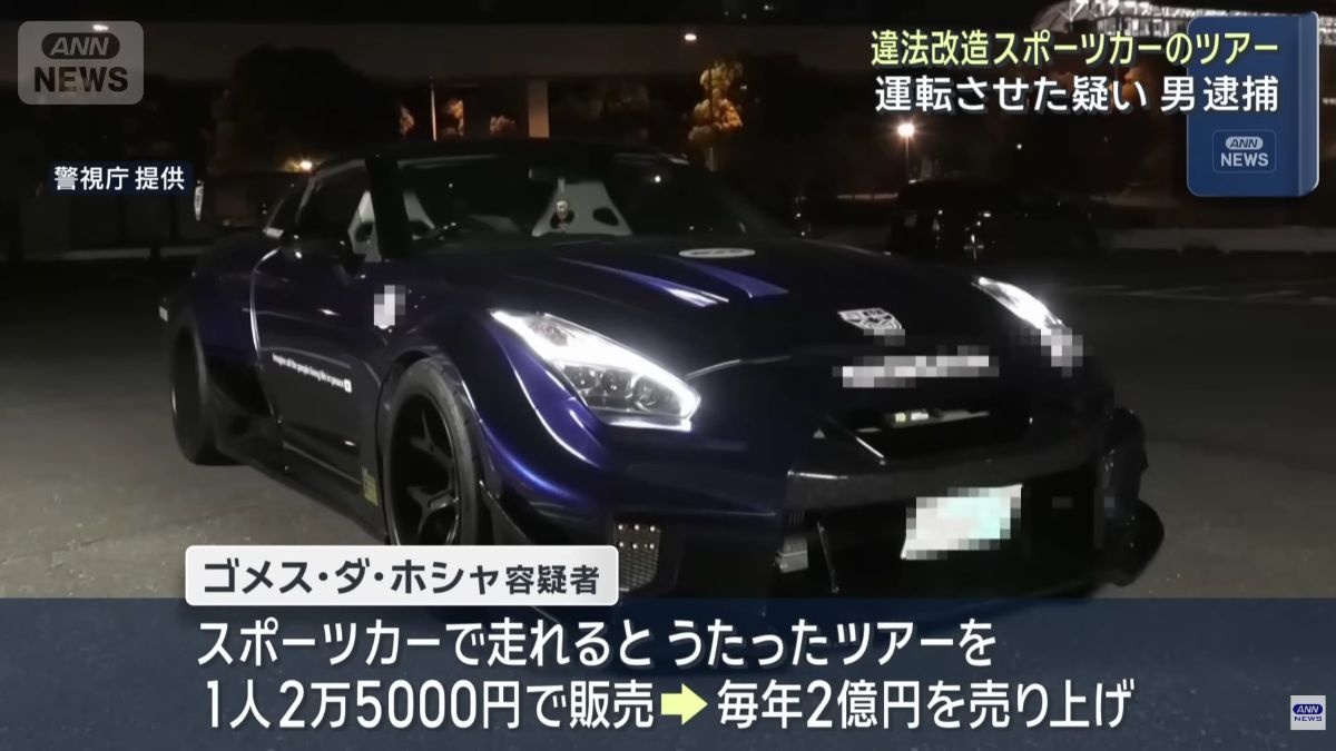ブラジル国籍のゴメス・ダ・ホシャ・ダニロ容疑者(34)は去年、違法に改造したスポーツカー2台を、ツアー業務を委託する運転手に運転させた疑いが持たれています。