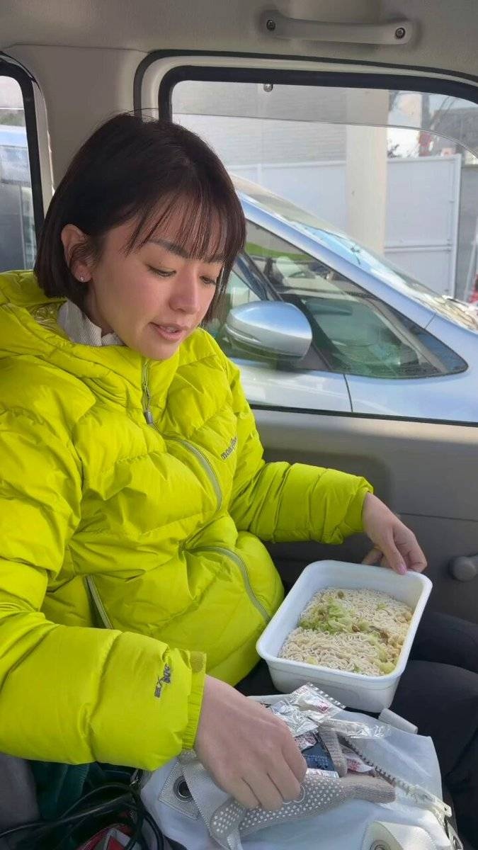佐々木氏は29日昼に「ペヤング流し込みました!!!」と車内で、湯切り済みの大盛りカップ焼きそばに粉末ソースをかけている動画を公開。「本日のお昼はあと7分しかないんですけど、時間なさすぎて。佐々木理江と言えばペヤング」「歯に青のりついちゃう」などと語り、一気にやきそばをかきこんでいた。