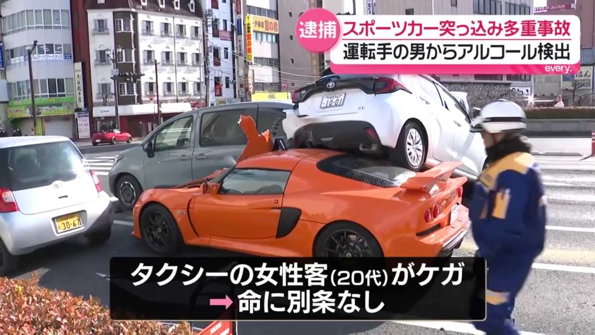 スポーツカーが車に突っ込み5台絡む事故 基準値以上のアルコール検出か 男を逮捕