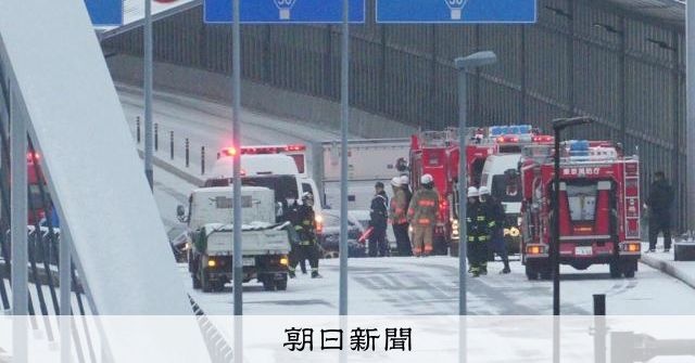 築地大橋で車7台絡む事故、警官ら6人軽傷 事故処理中に追突、雪影響か
