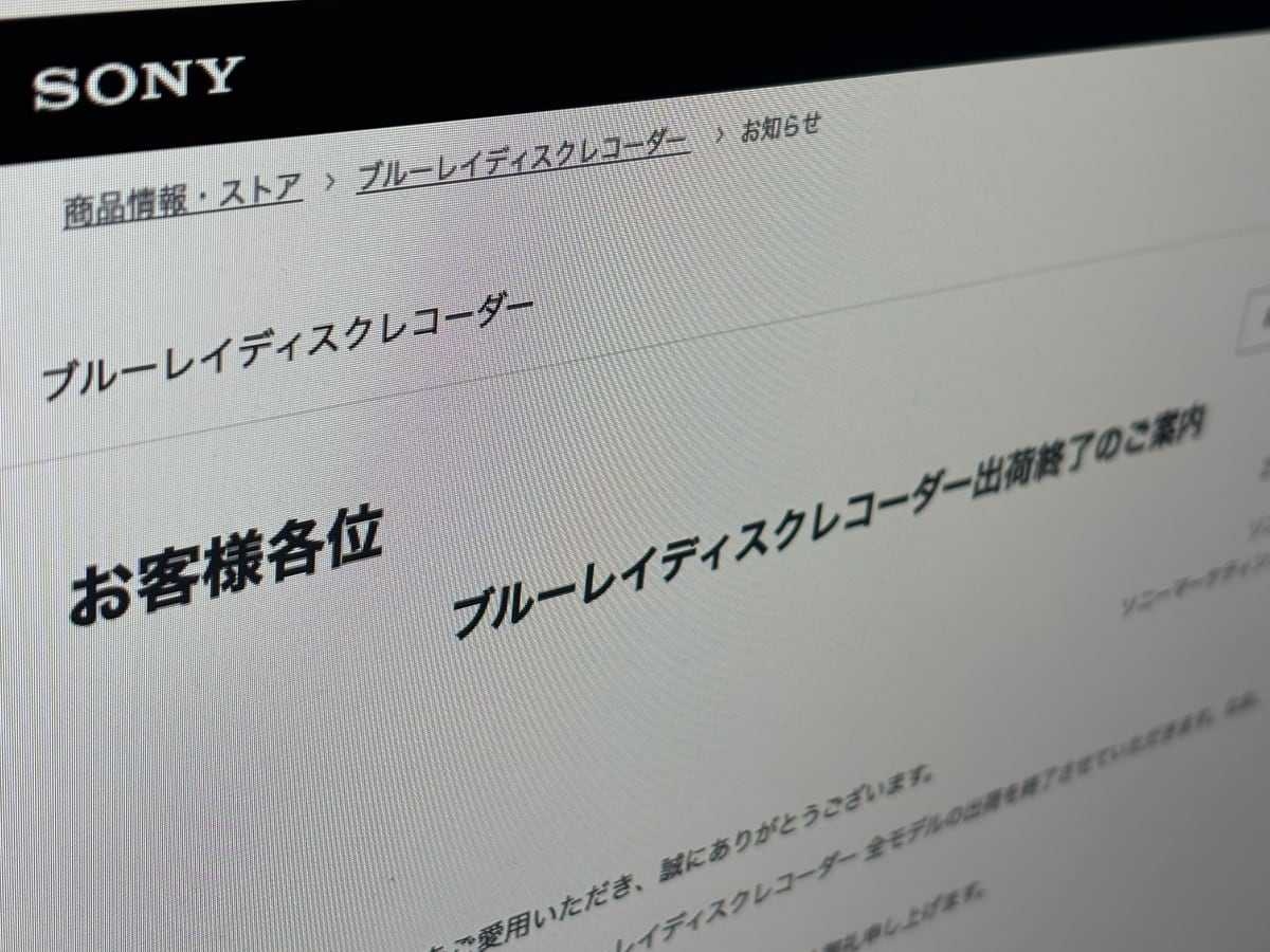 ソニー、ブルーレイディスクレコーダー全機種の出荷終了へ 「後継機種はございません」