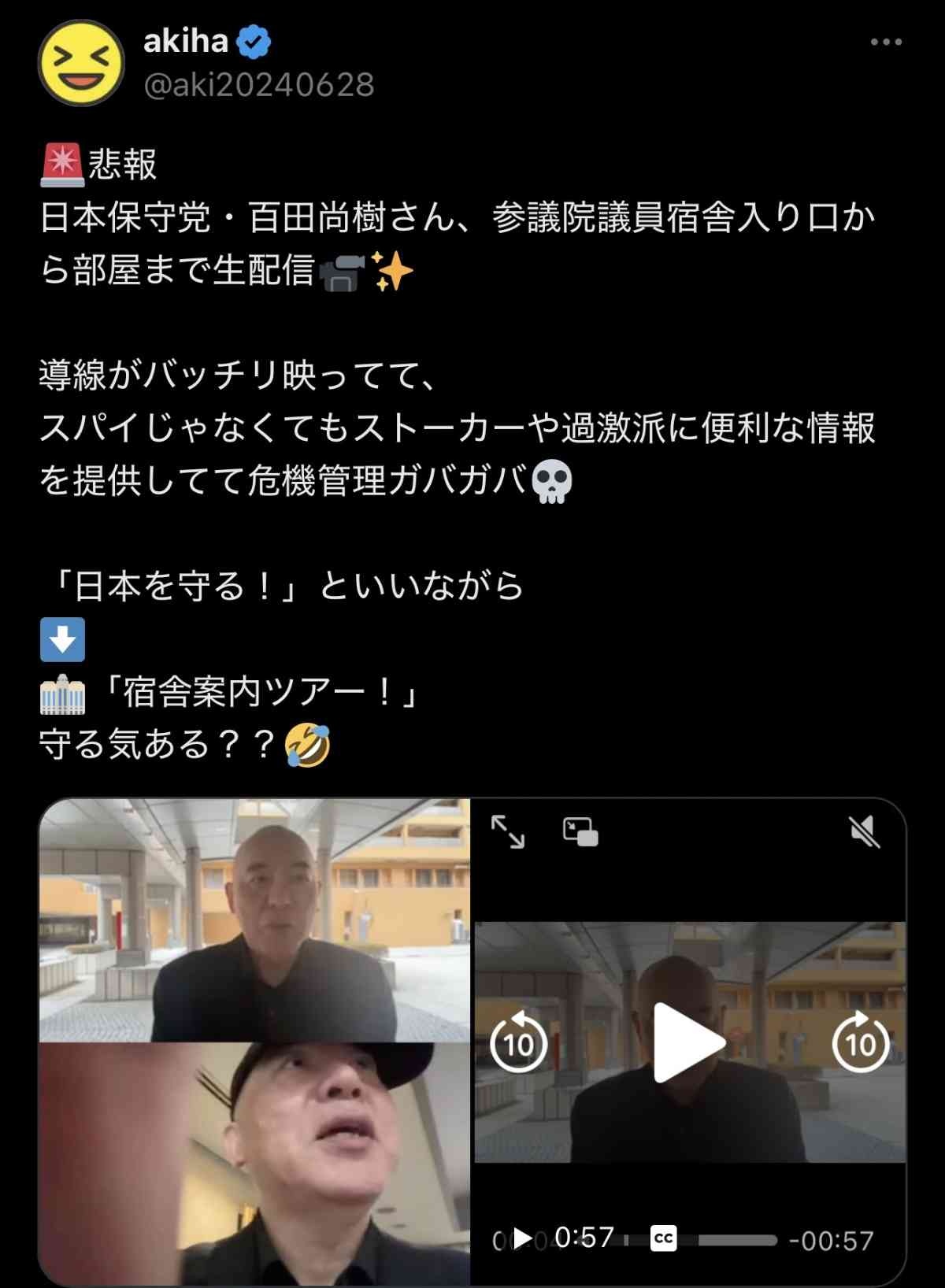 【動画】百田尚樹さん、議員宿舎の入り口から部屋までの導線を配信して炎上www警備員にまで怒られるw