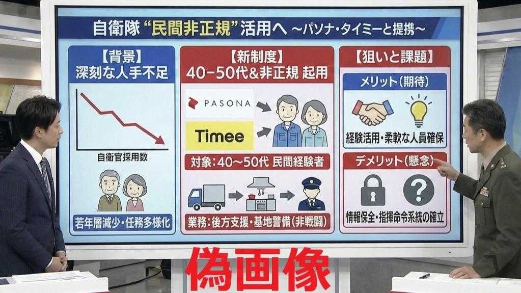 【ファクトチェック】自衛隊がパソナ・タイミーと提携するという偽画像のフェイクニュースが拡散(JSF) – エキスパート – Yahoo!ニュース