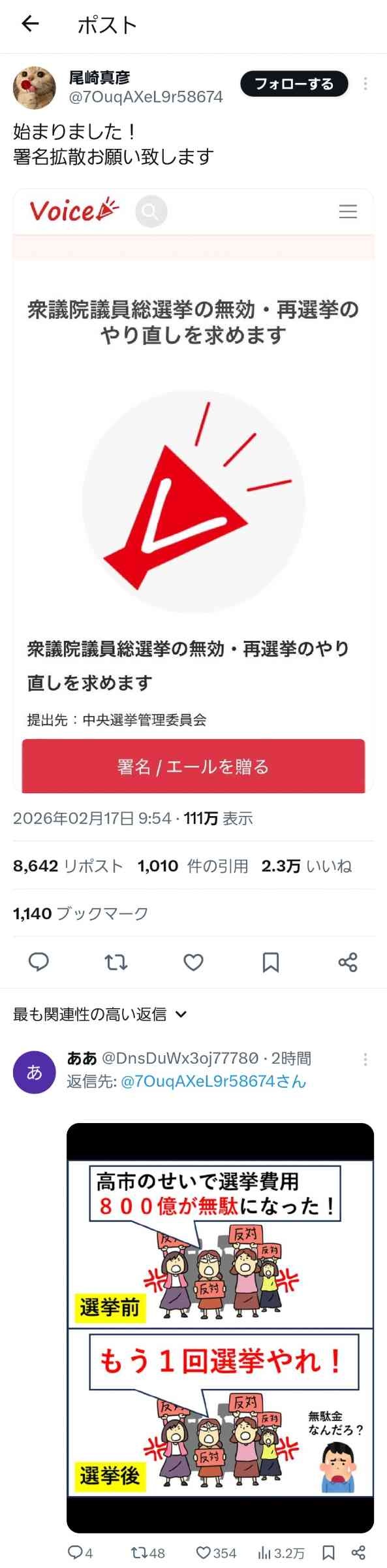選挙前のれいわ信者「高市のせいで800億が無駄に💢」選挙後「不正!やり直せ!」矛盾だと話題に