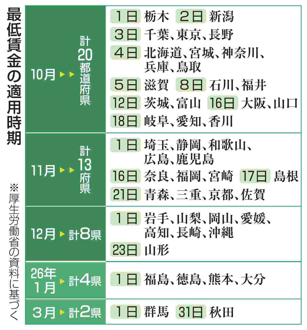 背景には、適用時期が遅れれば働く人への恩恵が小さくなり、地域間格差も一時的に広がることへの懸念がある。