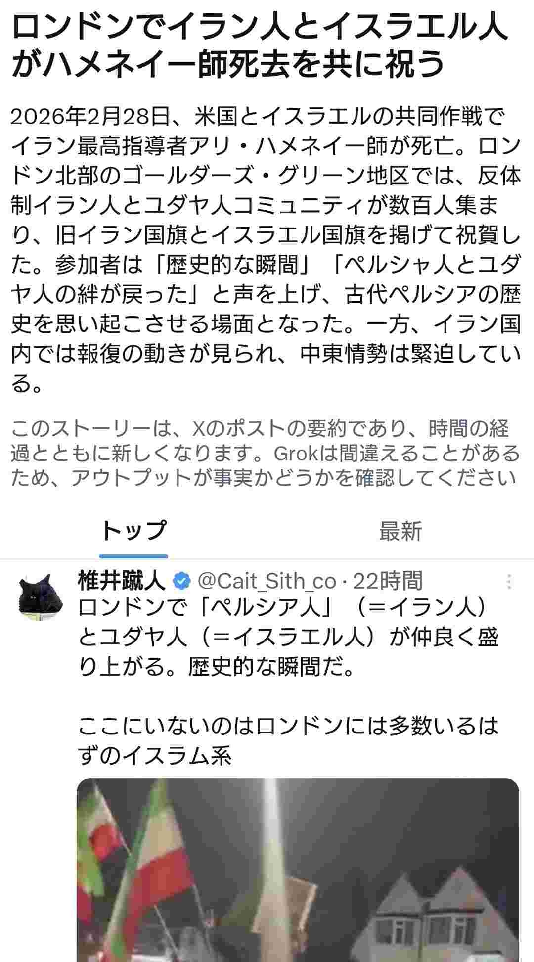 宿敵同士であるはずのイラン人とイスラエル人がハメネイー師死去を共に祝う