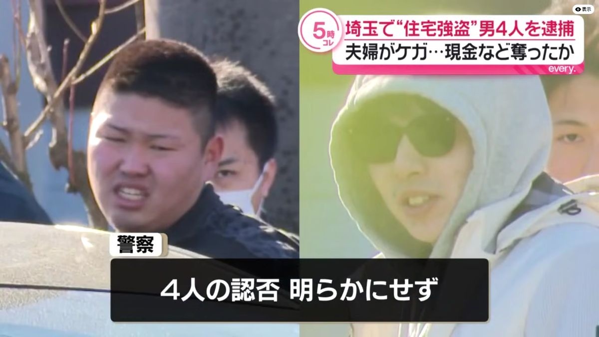 警察によりますと、佐藤辰弥容疑者と鎌田竜二容疑者ら4人は先月19日、狭山市の住宅に押し入り住人の高齢夫婦を殴るなどしケガをさせた上、現金13万円ほどや腕時計などを奪った疑いがもたれています。