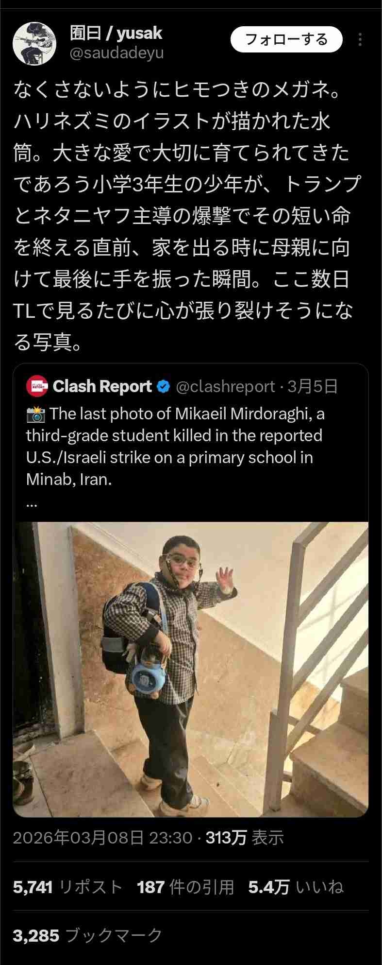 【画像】アメリカのトマホークミサイルで木っ端微塵になったイランのガキがお前らすぎると話題に
