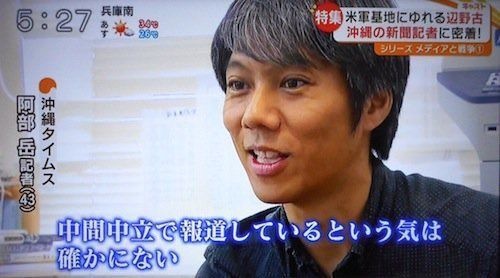 マスコミで乗船が確認できるのは、地元紙「沖縄タイムス」だ。同紙の記者は、2014年9月13日に平和丸に乗船。抗議活動の様子を取材し、翌日の紙面で掲載している。乗船の際、海保の職員は、立ち入り禁止区域から300メートル以内に抗議者が入った場合、身柄を拘束し、強制排除すると警告。それに対して同紙の記者は船上で、「300メートルの根拠は?」と質問もしたりしている。