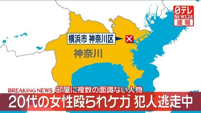 【神奈川・横浜市】部屋に複数の面識ない人物…20代女性が殴られ所持品奪われる 犯人逃走中
