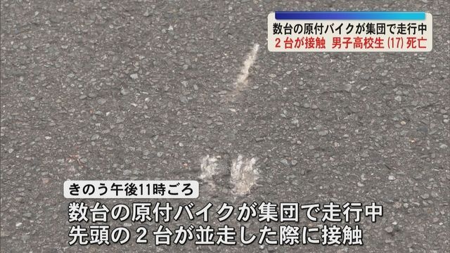 集団走行中の原付バイク 先頭の2台が接触し男子高校生(17)が死亡
