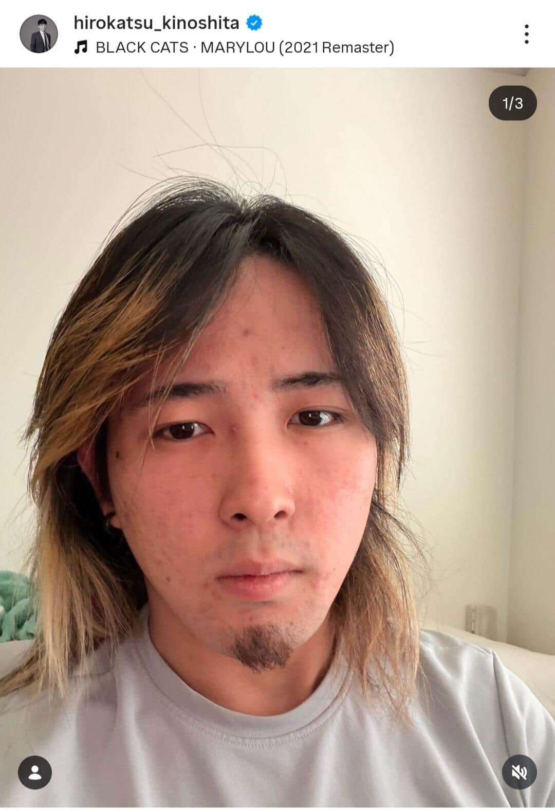木下氏はインスタグラムで、「4年前のJJと今を比べてみました。別人?(笑)」と投稿。長髪にあごひげを生やした大維志さんの近影と、青色の髪で、目を閉じて微笑む、4年前の大維志さんの写真を公開した。現在の大維志さんは4年前と比べ、顔がシャープになったように見える。
