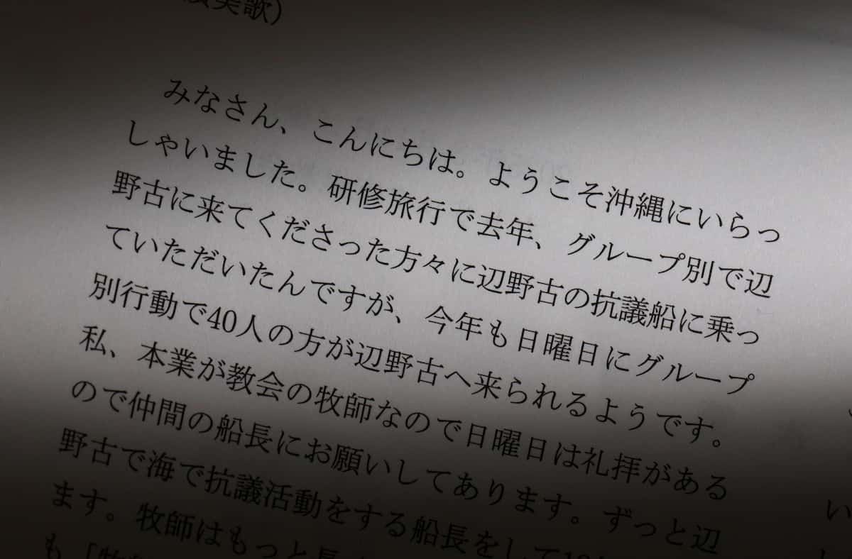 <独自>校長説明と食い違い 辺野古船長が生徒に「抗議船」と明言 昨年研修報告に記載