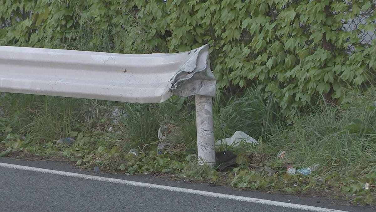 警察などによりますと、片側2車線の道路沿いにある右側のガードレールに軽乗用車がぶつかっていたということです。