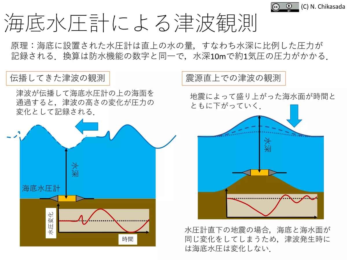 水は流体なので津波の発生時には微細な音(音圧)が生じる