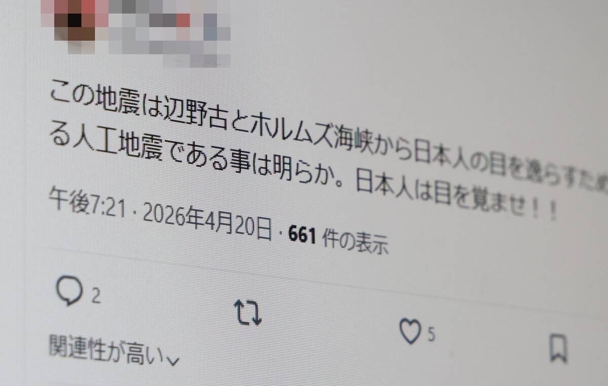 【デマ】地震巡るデマ、SNSで拡散 「人工地震」投稿、6000件超 専門家「公的機関のサイト活用を」