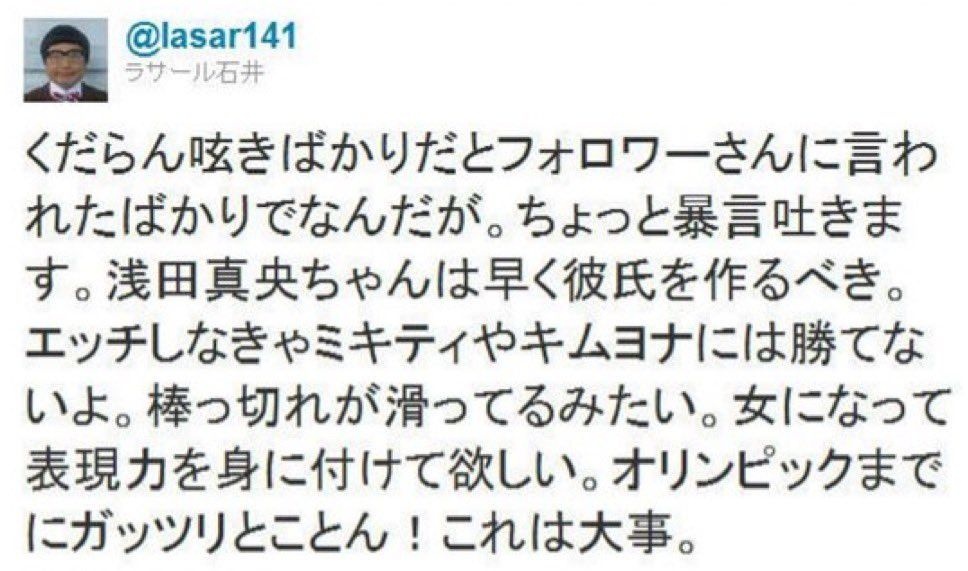 こいつが真央ちゃんに言った事がネットでどれだけ炎上したのか知らないのか