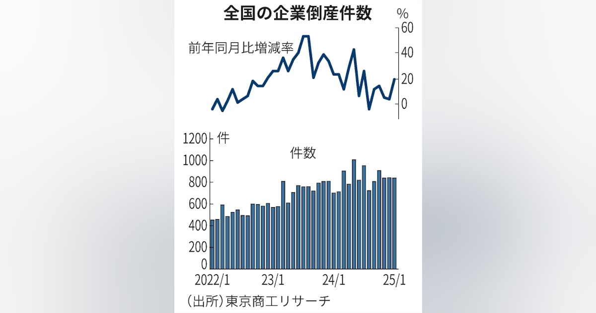 1月の倒産、11年ぶり800件超 「人手不足が理由」3.2倍に - 日本経済新聞東京商工リサーチが10日に発表した1月の企業倒産(負債額1000万円以上)は840件と前年同月比19.8%増えた。1月で800件を超えるのは2014年以来11年ぶりだ。人手不足が理由の倒産は3.2倍となり、サービス業など労働集約型の産業で人...www.nikkei.com - 2 : 2025/02/10 14:13:44 2jAah