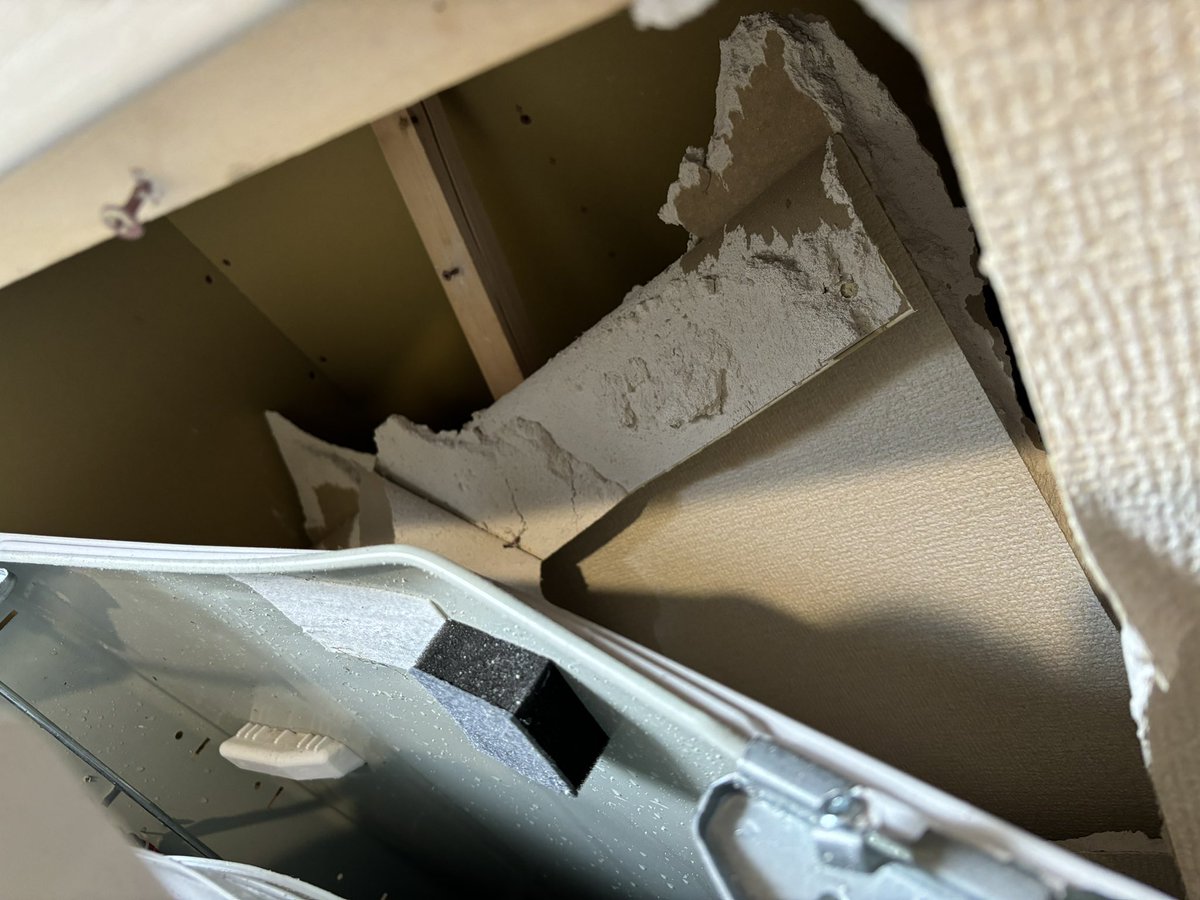 【衝撃】「洗濯機爆発して家壊れた…助けてwww」新築マイホーム壁に大きな穴 原因は防水シーツの脱水か シーツに「使用OK」記載も…NITE注意喚起
