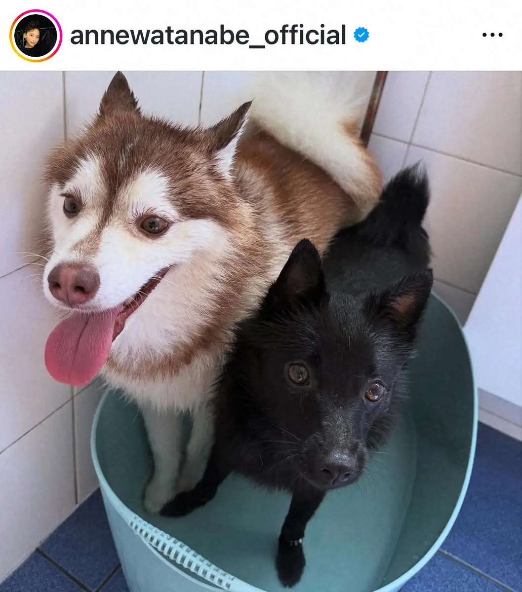 記録的な猛暑が続いているパリ。「暑い 災害的猛暑で、学校も休校」とつづり、水浴びする愛犬たちの写真を投稿した。
