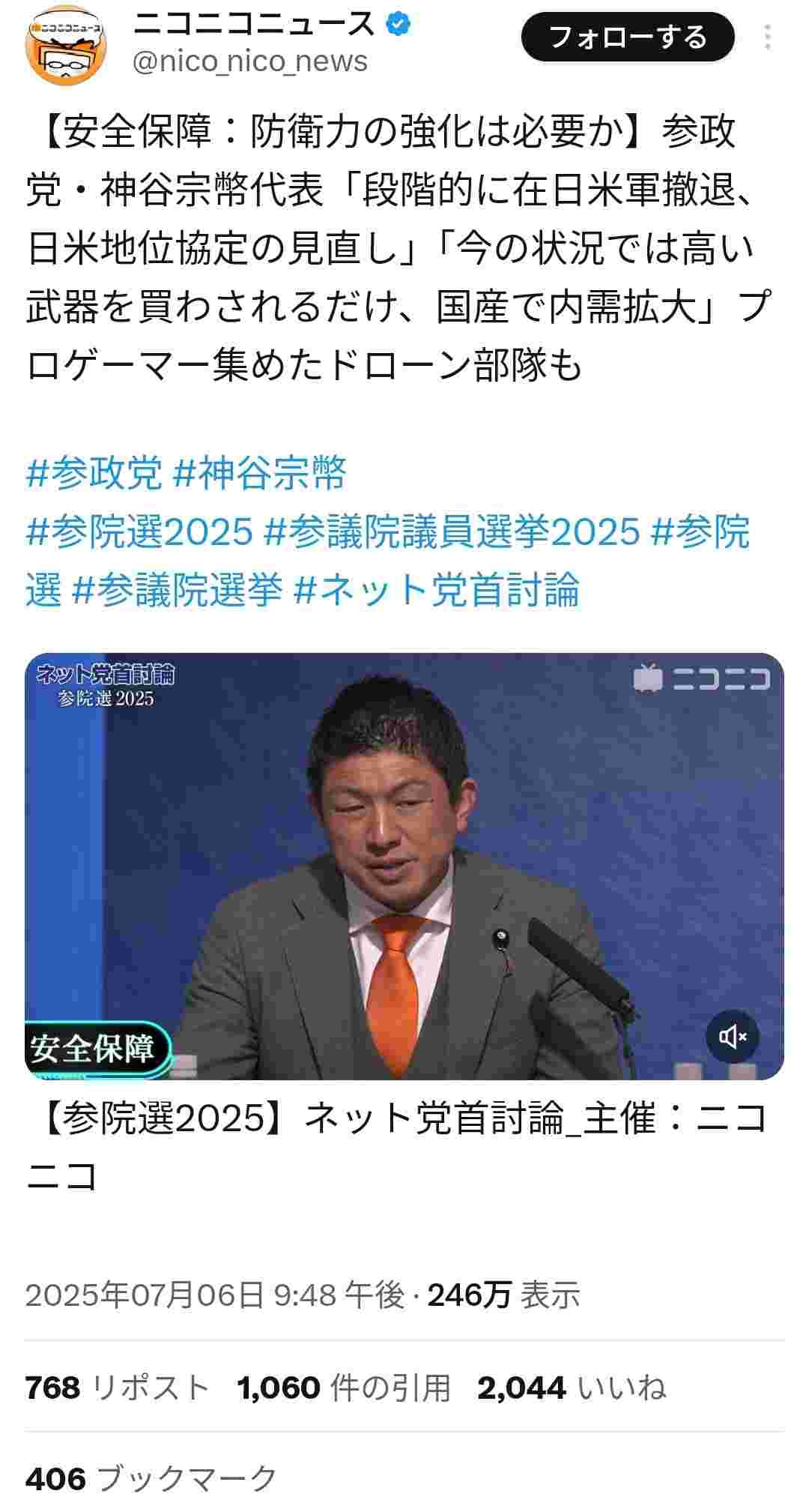 https://x.com/nico_nico_news/status/1941841658792014089 - 2 : 2025/07/07(月) 12:27:27.36 ID:Ye3fsBWZ0