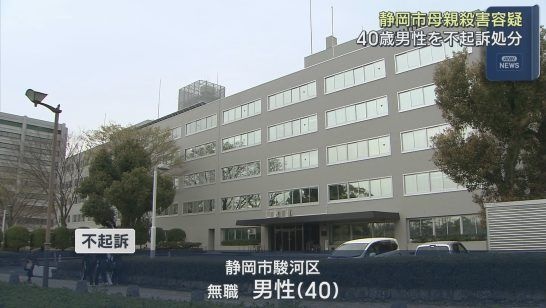 不起訴処分となった静岡市駿河区に住む40歳の無職の男性は、3月自宅で当時72歳の母親の背中を包丁で刺し、殺害したとして送検されていました。