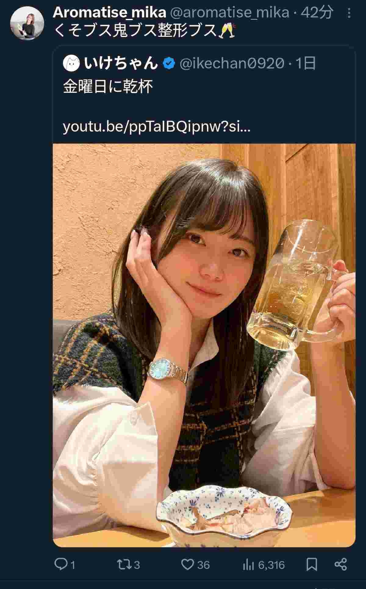 暑苦しそうでちょっと嫌だな。いけちゃんさんのほうに見る目ないのかブス専なのか。 - 24 : 2025/07/26(土) 23:38:45.18 ID:MwSztdrR0