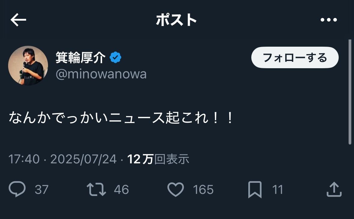 そんな書き込みありそうでないわな - 5 : 2025/07/26(土) 23:18:48.90 ID:YO90Rlym0
