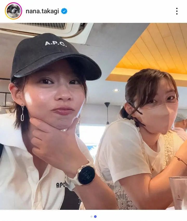 「なななつでぇと なっちゃんがななロスだったらしいので ハワイから帰国後すぐ再会」とつづり、柔道女子48キロ級パリ五輪金メダリストの角田夏実とカフェでくつろぐショットを投稿。「私のこと大好きなんだから (誕生日プレゼント何がほしいか聞いたら、ななちゃんとの時間と言ってきたかわい子ちゃん)」と仲良しぶりを明かした。高木さんがかぶっているA.P.C.のキャップは「なっちゃんからのプレゼント」だという。