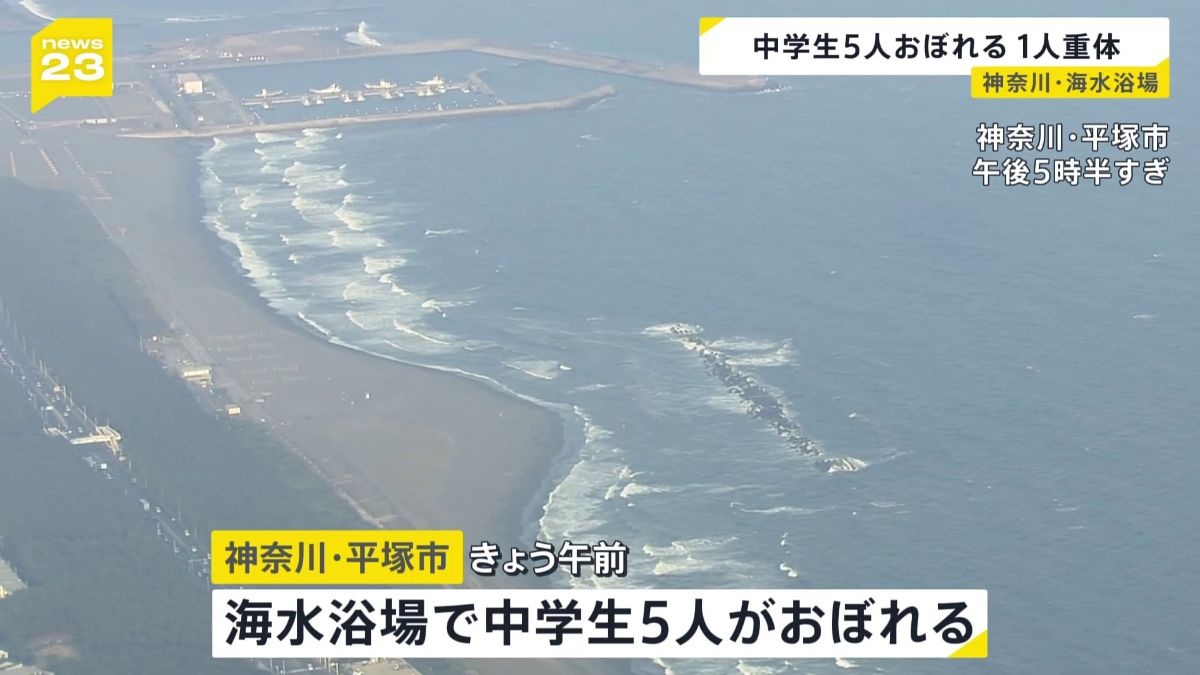 きょう午前、神奈川県平塚市の海水浴場で中学生5人が溺れました。
