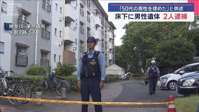 神奈川県茅ケ崎市の岡安唯容疑者(38)と小椋亮容疑者(44)は去年5月ごろ、集合住宅1階の自宅の床下に遺体を埋めて遺棄した疑いが持たれています。