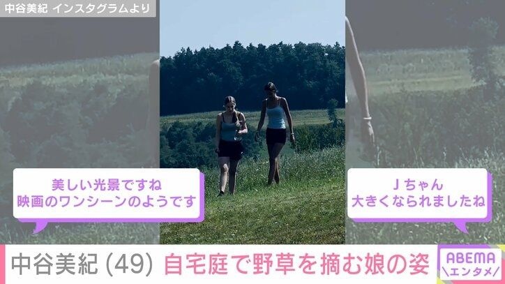 俳優の中谷美紀(49)が15日、Instagramを更新。娘と娘の友人がオーストリアの自宅の庭で野草を摘む様子を披露し、反響を呼んでいる。