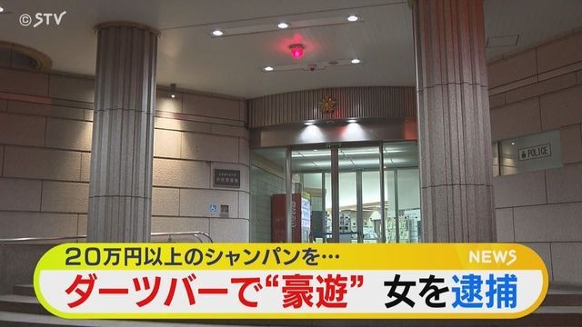逮捕された札幌市東区の32歳の女は、札幌市中央区のすすきののダーツバーで、代金を支払う意思も能力もないのに、1本20万以上するシャンパンなどを注文し、