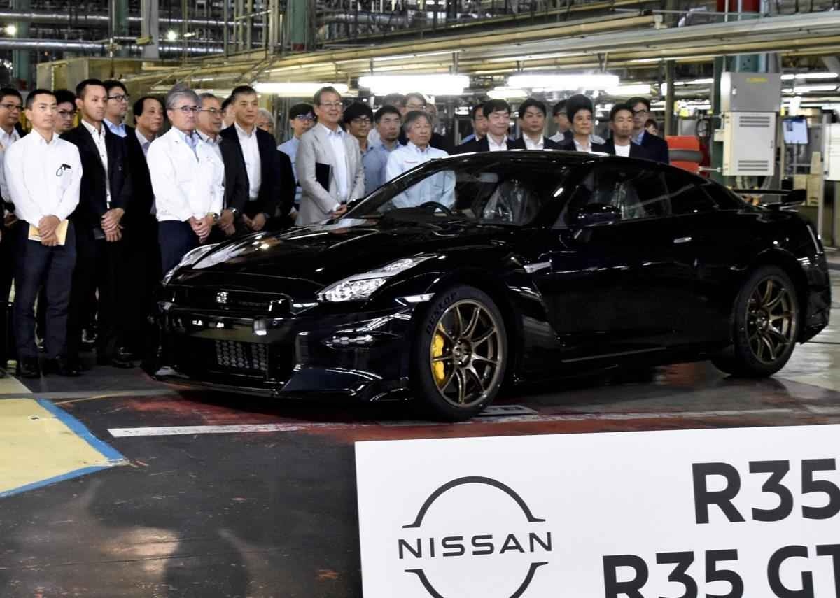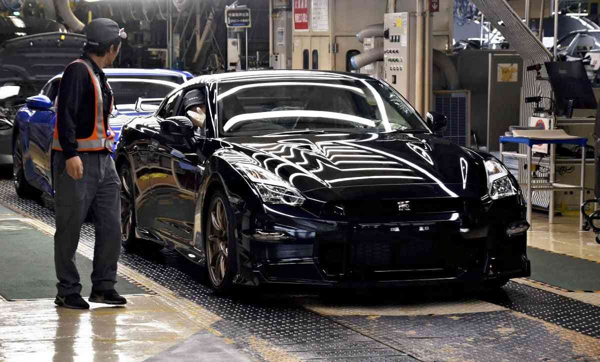 生産を終了した日産自動車の「GT-R」(26日、栃木県上三川町の栃木工場で)